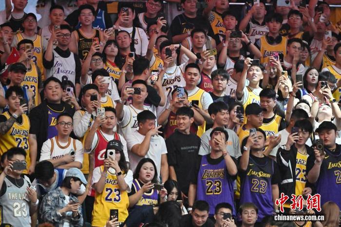 9月5日晚,NBA球员勒布朗·詹姆斯中国行活动在四川成都高新体育中心举行。活动中,勒布朗·詹姆斯观看了篮球比赛并与中国篮球小将进行互动交流。图为现场球迷。中新社记者 张浪 摄