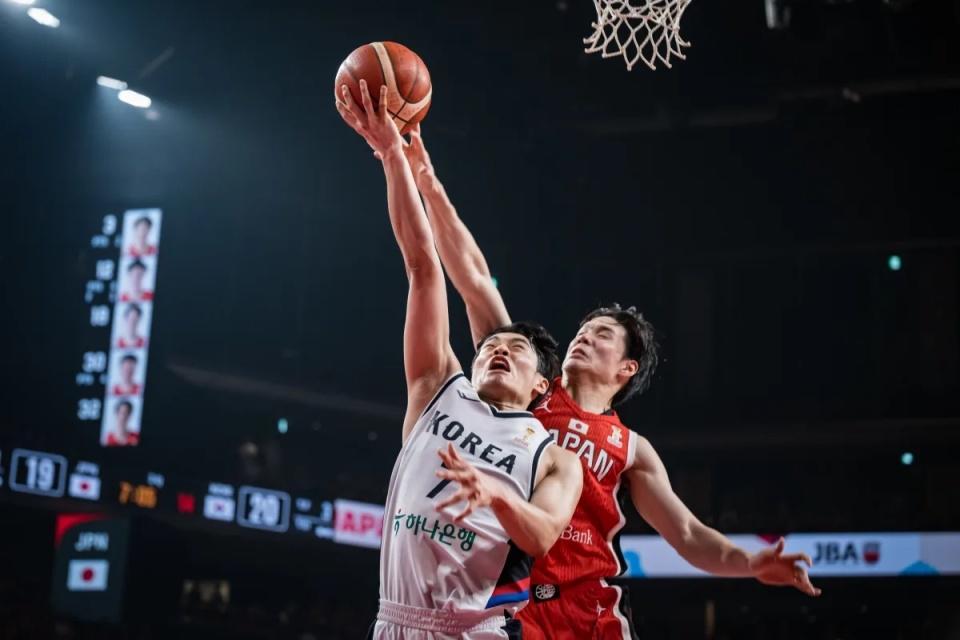 在第一窗口期比赛,日本男篮与韩国男篮均是2胜0负,但在第二窗口期首场比赛日韩两队均输球。本场首节比赛,渡边雄太暴扣与霍金森三分取得5-0领先,韩国男篮内外开花一波10-2攻势反超3分打停日本男篮。安藤誓哉上篮得分,安永俊三分命中,霍金森与富永启生率队接连追分,首节结束日本男篮15-16落后韩国男篮。首节日本男篮仅17中5,其中三分7中1,霍金森7中3得到7+4+1+1与渡边雄太4中1仅得到2分;韩国男篮11中5,其中三分7中2,李政炫三分2中2得到6分与李贤重3中1得到4+5。