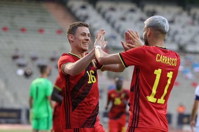 20'小阿扎尔带球推进后分边,卡拉斯科再送横传,小阿扎尔用膝盖将球撞进,1比0!
