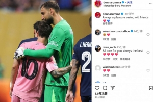 两人在赛后也相拥寒暄,多纳鲁马在赛后也晒出了两人的拥抱照并配文:“见到老朋友们总是一件开心的事。”