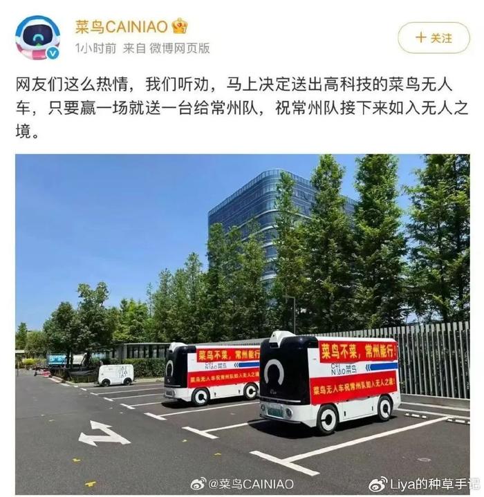 “求爱 失败但友谊“常存”,当场承诺“常州队赢一场就送一辆无人车”,“菜鸟不菜,常州能行”的应援标语恨不得挂满天际。