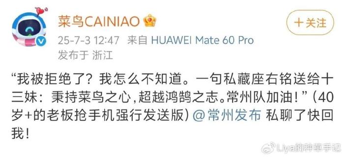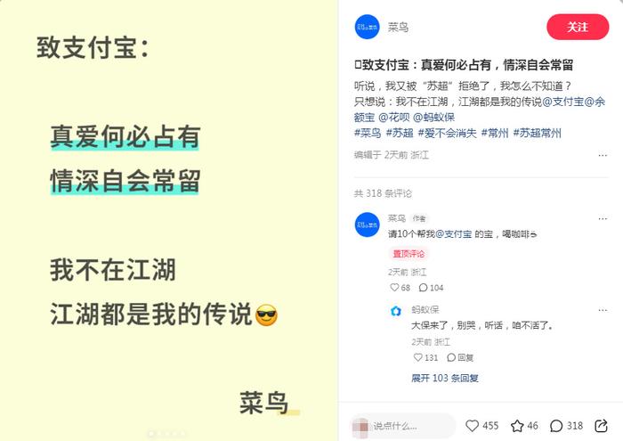 虽说赞助苏超没成,菜鸟却靠“被嘲”成功出圈,怎么不算因祸得福呢?