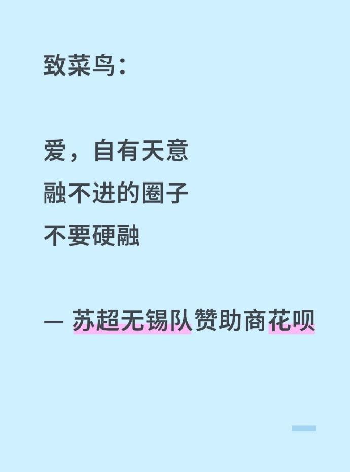 花呗:“爱,自有天意,融不进的圈子不要硬融。”