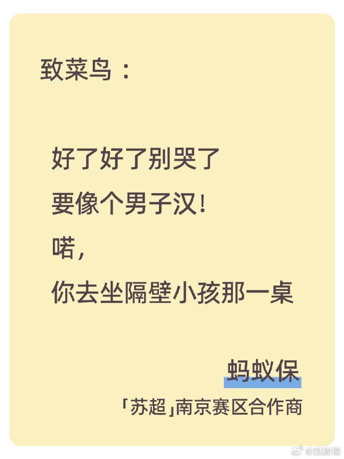 蚂蚁保:“好了好了别哭了,像个男子汉!喏,去坐隔壁小孩那桌。”